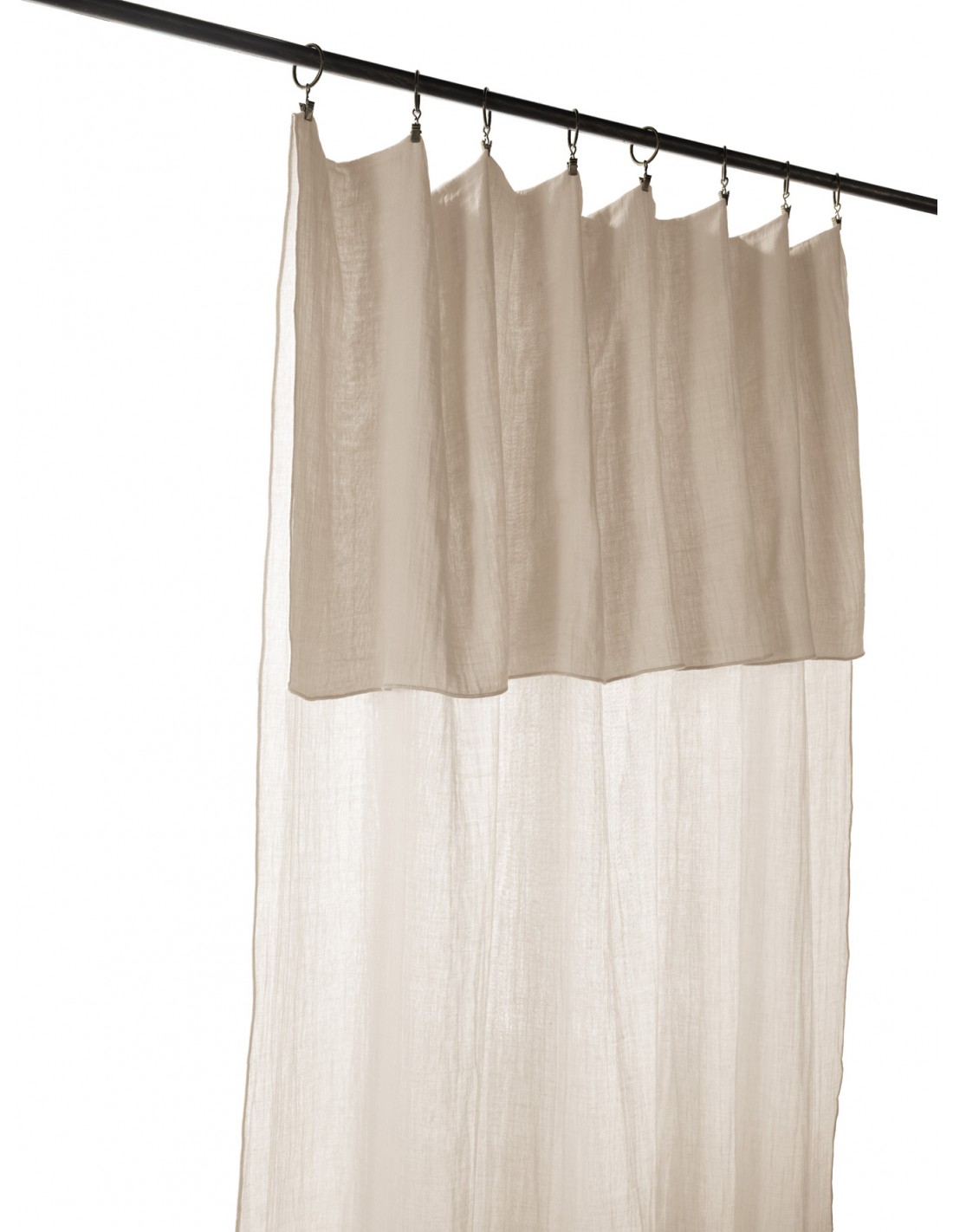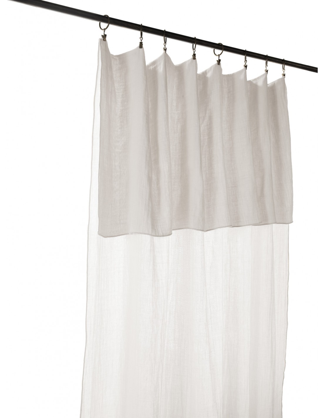 On appréciera aussi les finitions du produit, il vous suffit de replier votre rideau à la hauteur souhaitée et de le suspendre aux 8 pinces fournies, il est très facile à installer, le raffinement par excellence par la forme, la matière, le maintien.