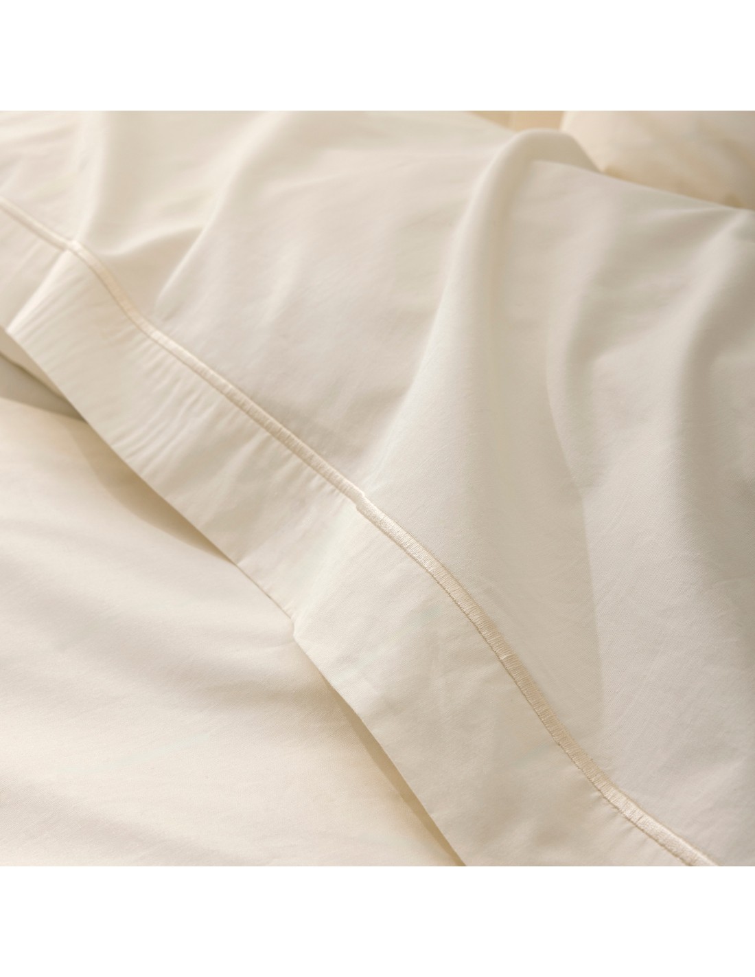 Drap plat percale pur coton peigné longues fibres 80 fils/cm² avec finition points bourdon.