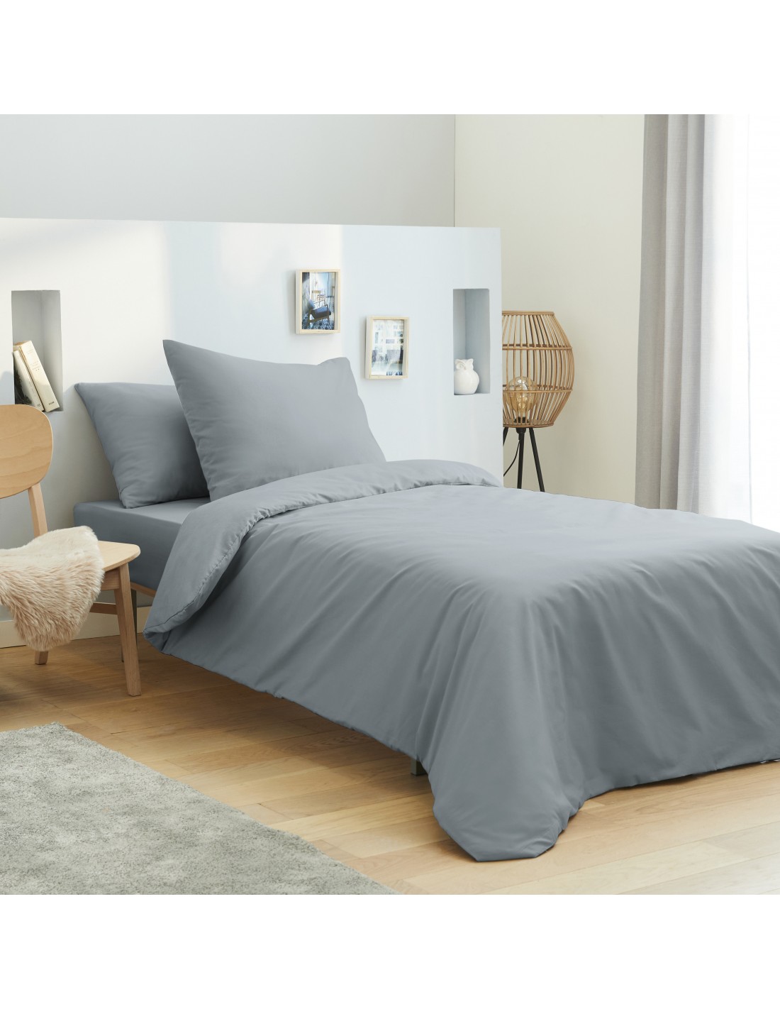 Housse de couette 140 x 200 unie gris clair 100% Coton / 57 Fils/cm²