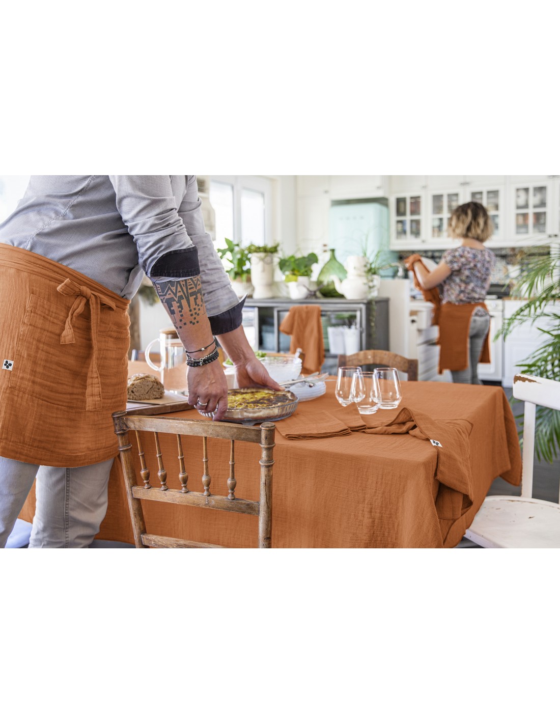 Et comme le plaisir de manger et de recevoir est un art de vivre, la star de la table c'est bien cette nappe tendance et bohème en gaze de coton, une matière légère, fluide et surtout très douce.