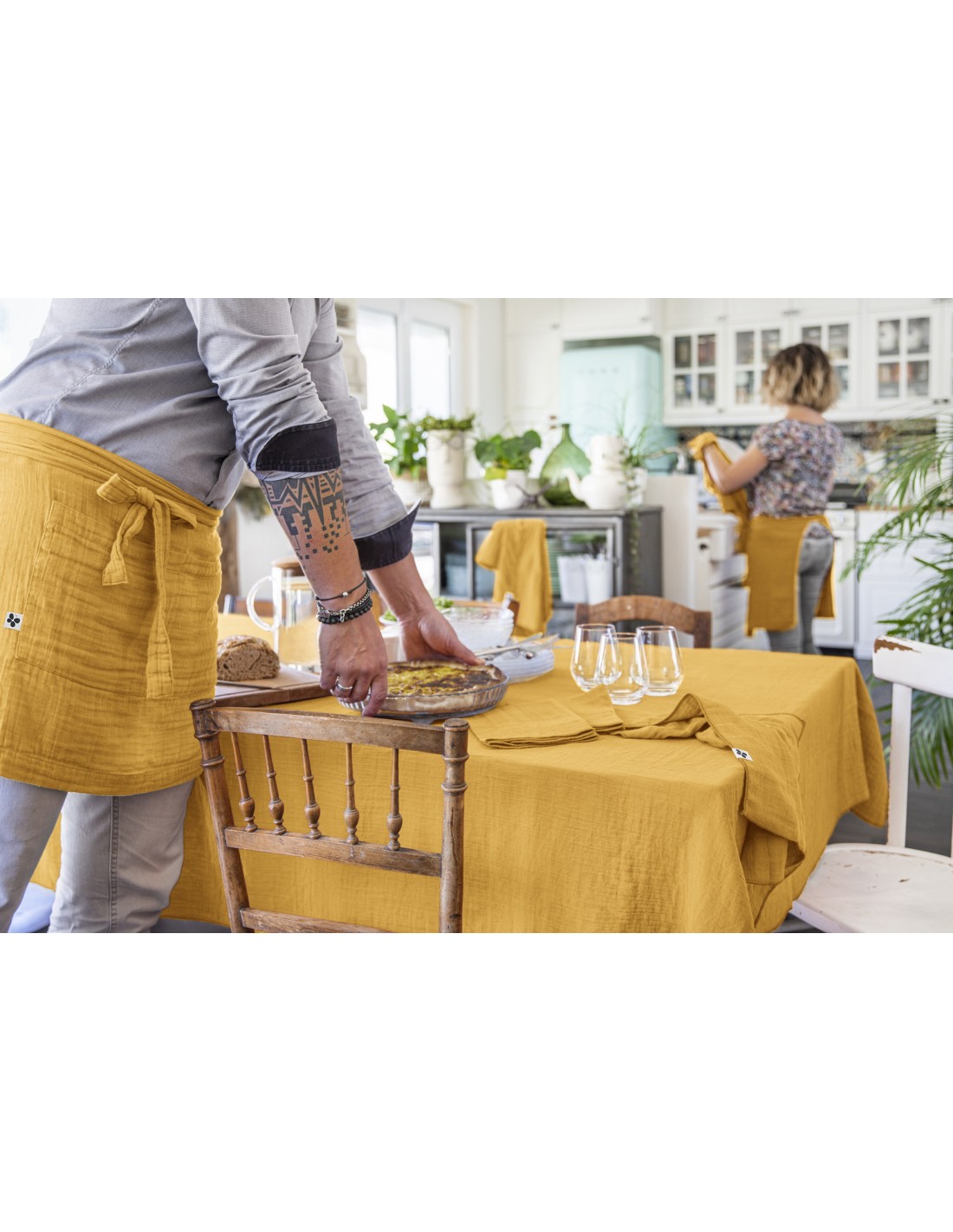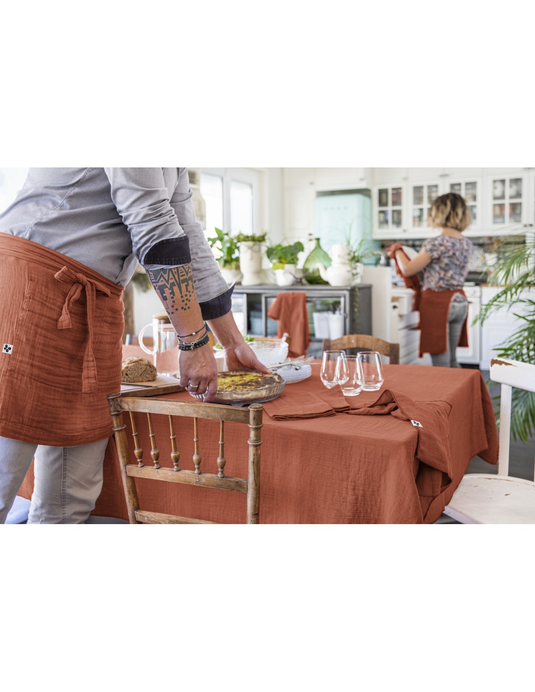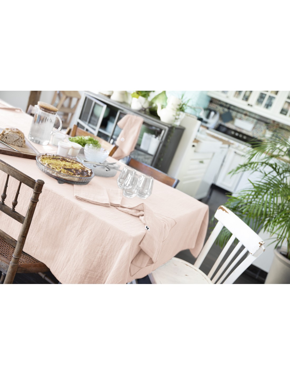 Et comme le plaisir de manger et de recevoir est un art de vivre, la star de la table c'est bien cette nappe tendance et bohème en gaze de coton, une matière légère, fluide et surtout très douce.