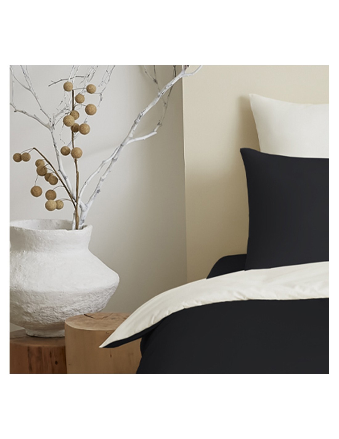 Pack complet 4 pièces 140 x 200 Noir/Blanc 100% coton / 57 fils/cm²