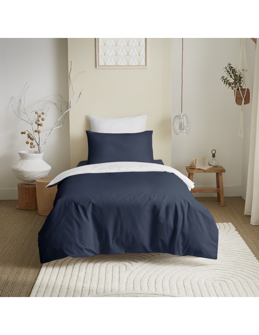 Pack complet 4 pièces 140 x 200 Marine/Blanc 100% coton / 57 fils/cm²