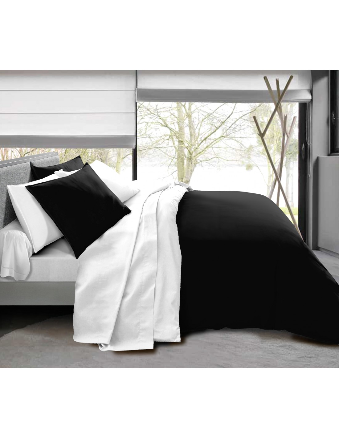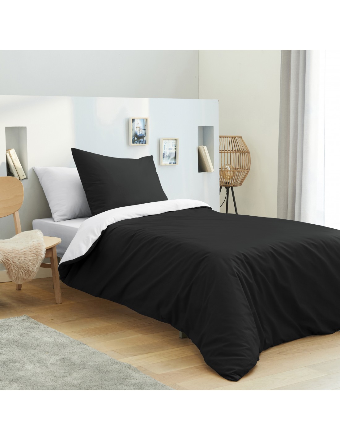 Pack complet 4 pièces 140 x 200 Noir/Blanc 100% coton / 57 fils/cm²