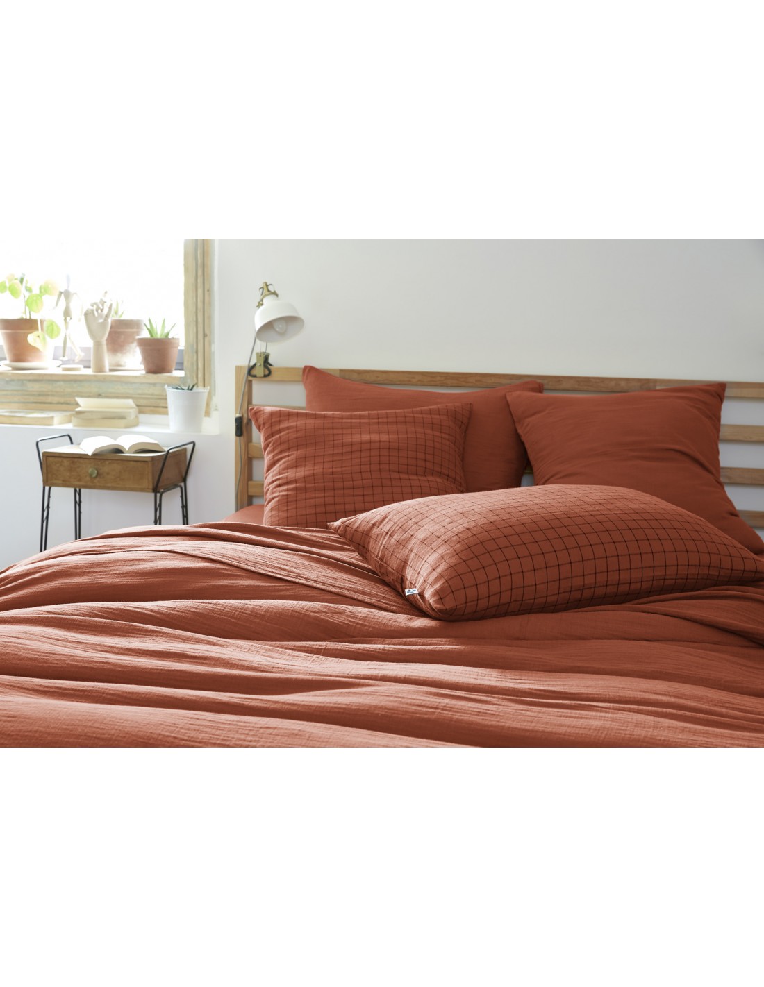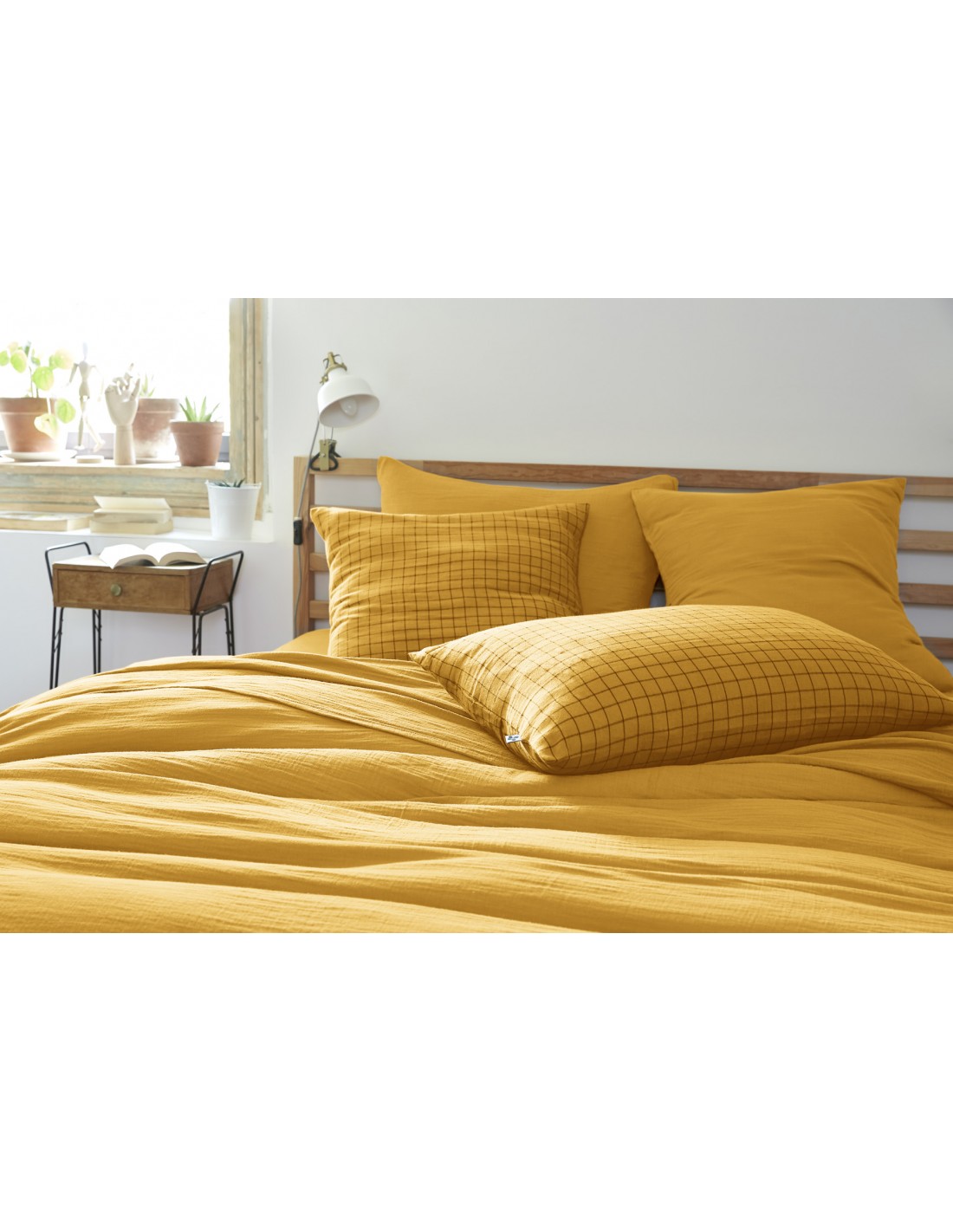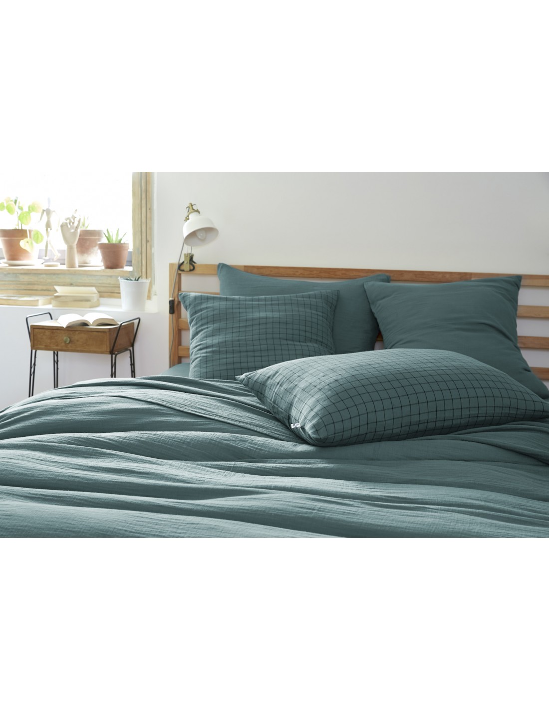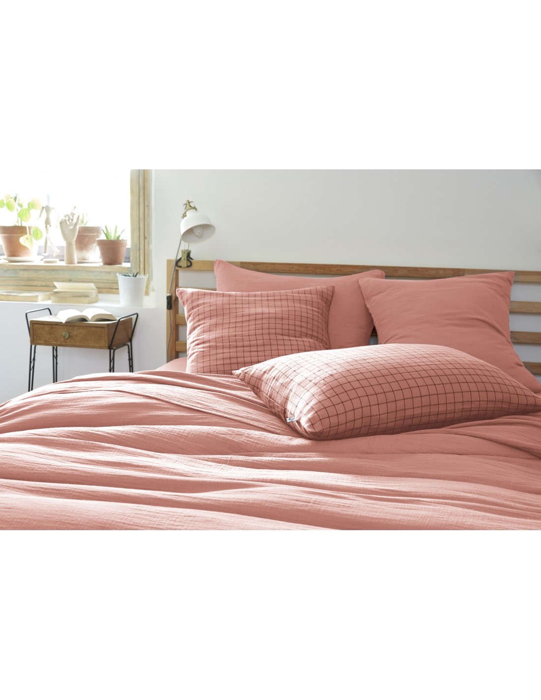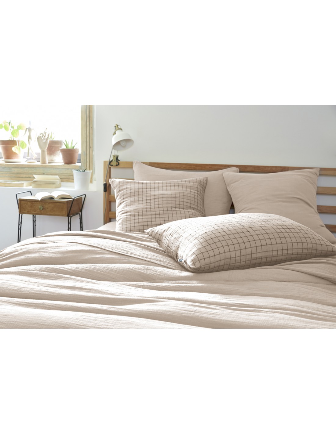 Taie d'oreiller Tissé-teint petits carreaux Déco "Gaïa Mix" 60 x 60 cm Gaze de Coton l'Effet Papillon