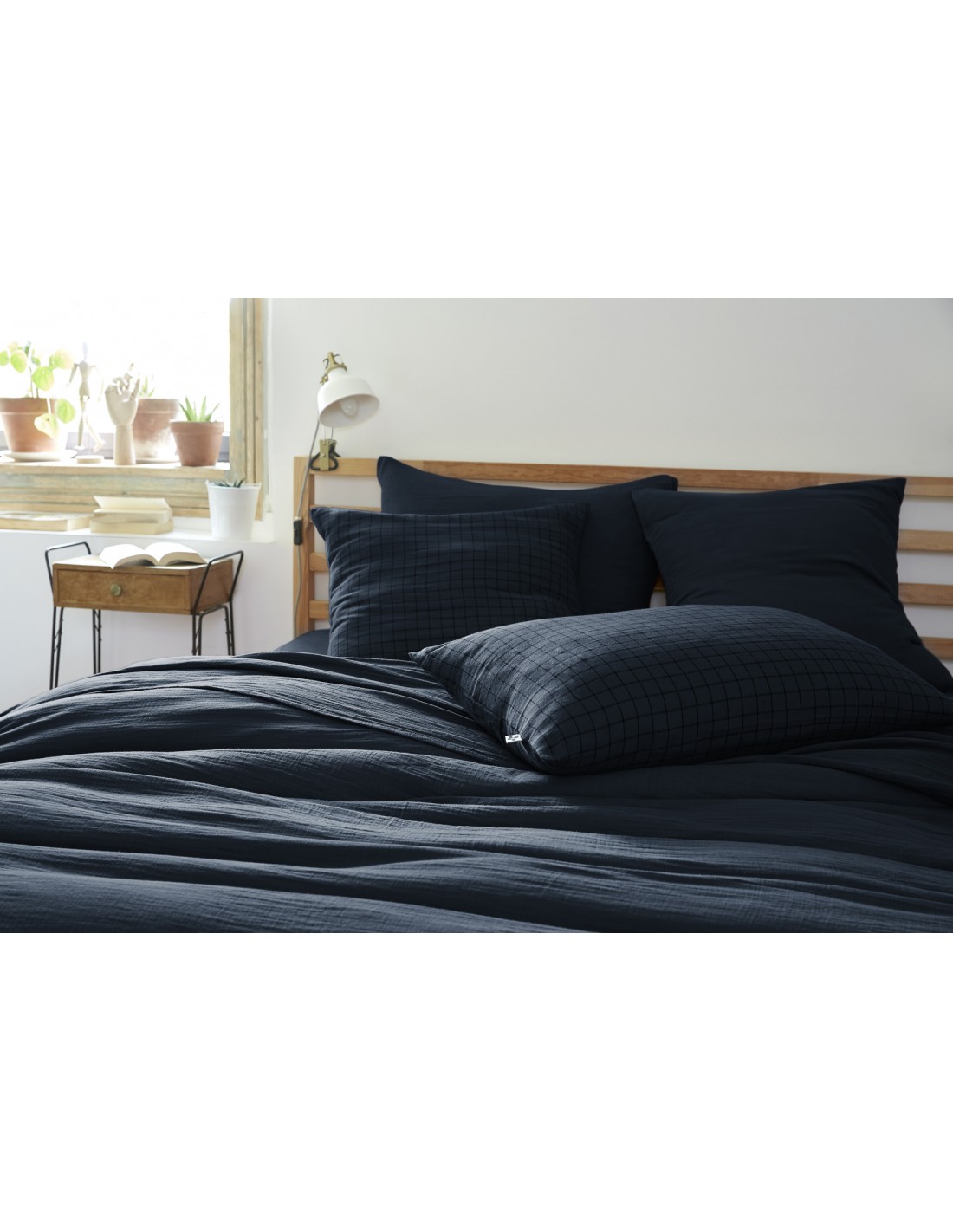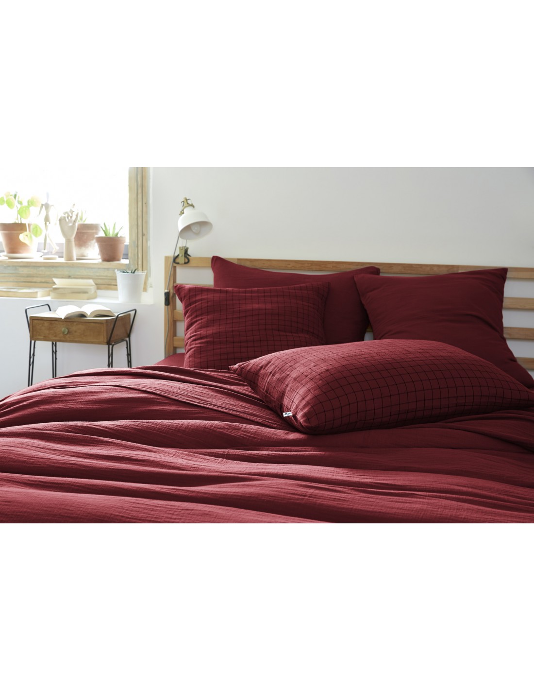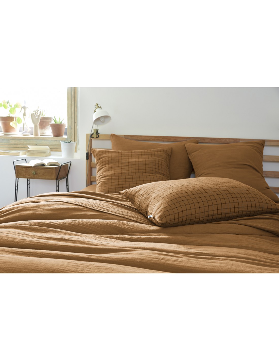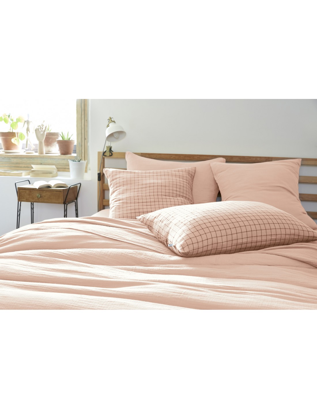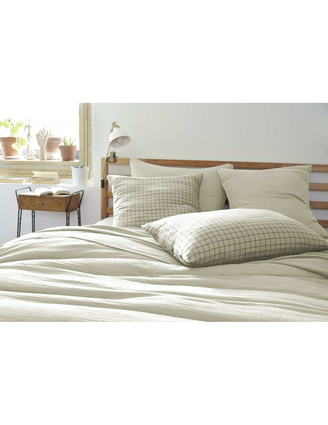Taie d'oreiller Tissé-teint petits carreaux Déco "Gaïa Mix" 50 x 70 cm Gaze de Coton l'Effet Papillon