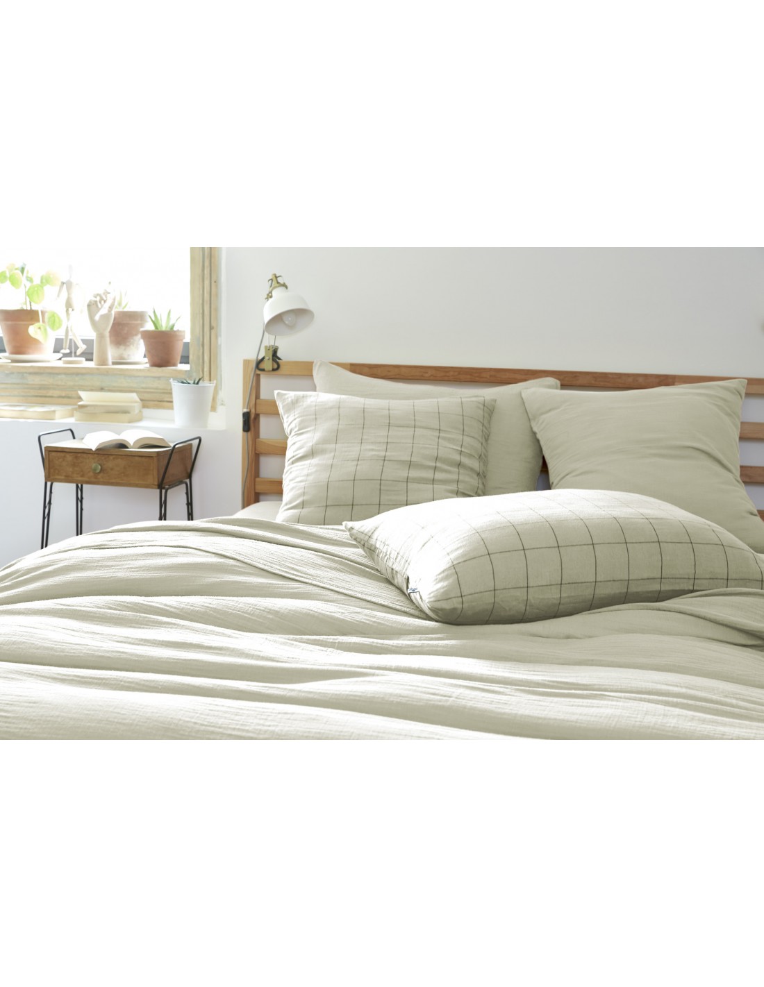 Taie d'oreiller Tissé-teint grands carreaux Déco "Gaïa Match" 60 x 60 cm Gaze de Coton l'Effet Papillon