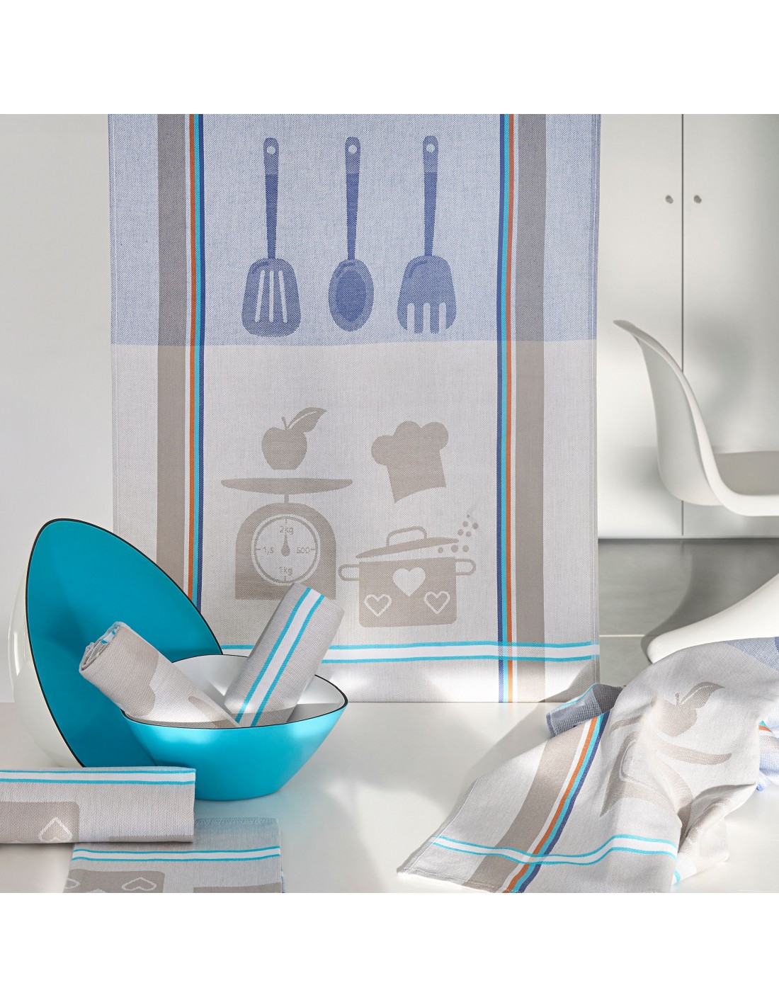 Lot de 6 torchons de cuisine imprimés "Atelier Gourmet" 50 x 70 cm Coton Egyptien