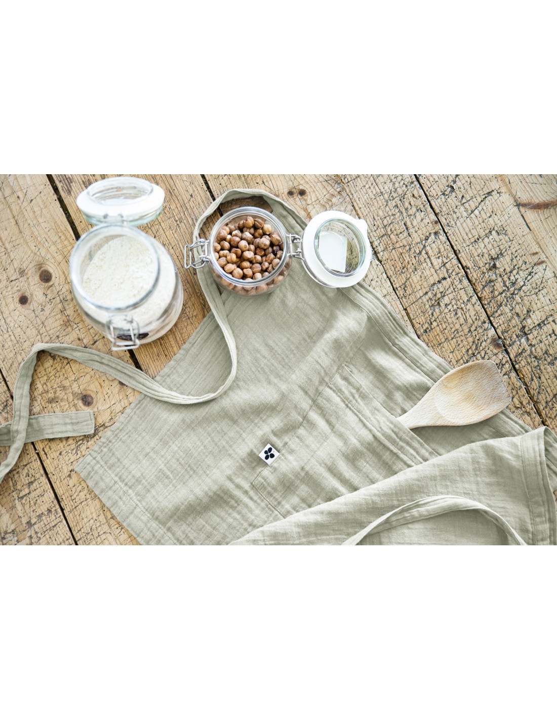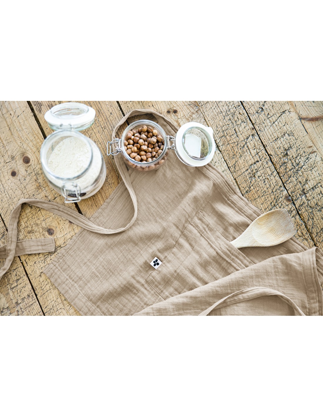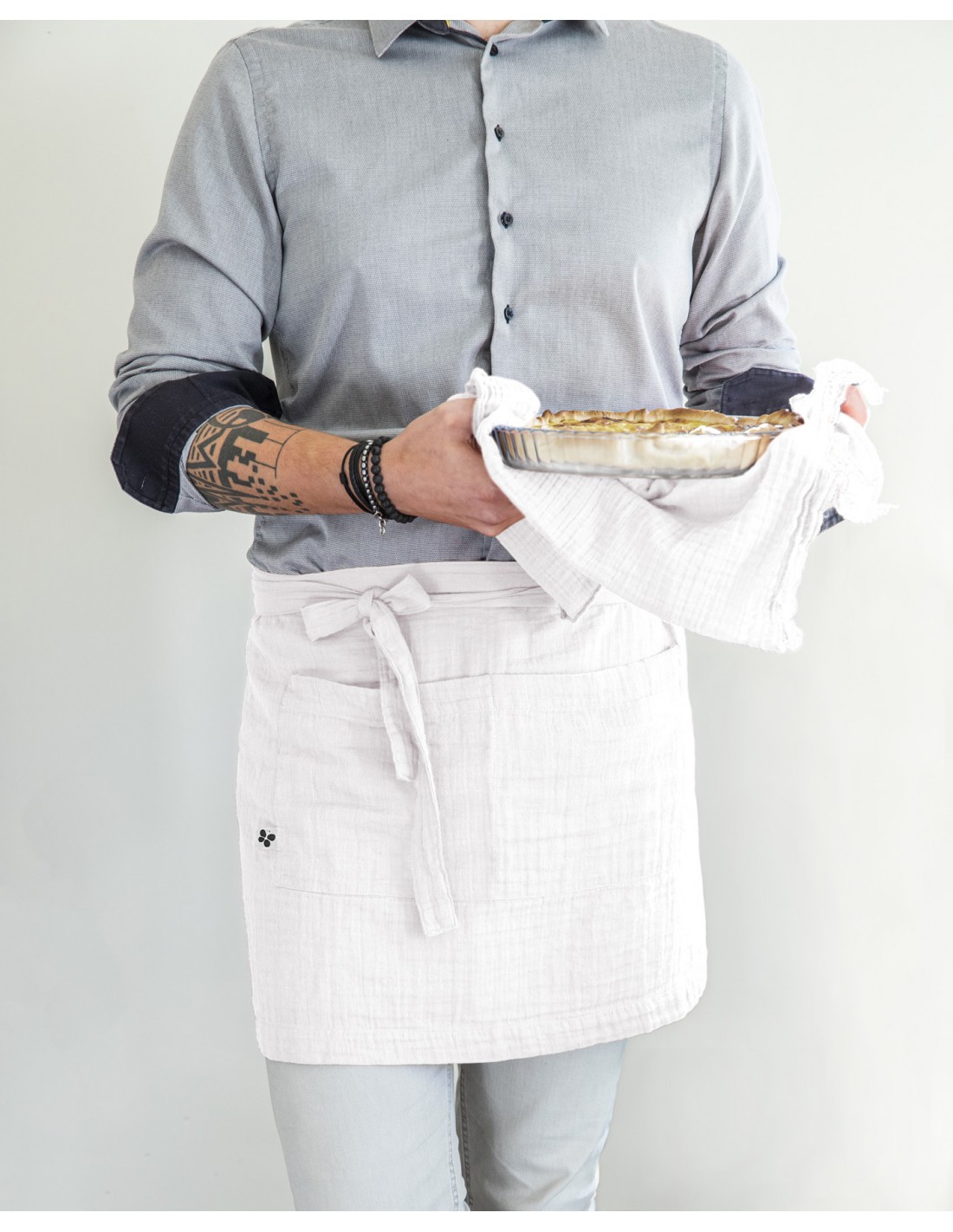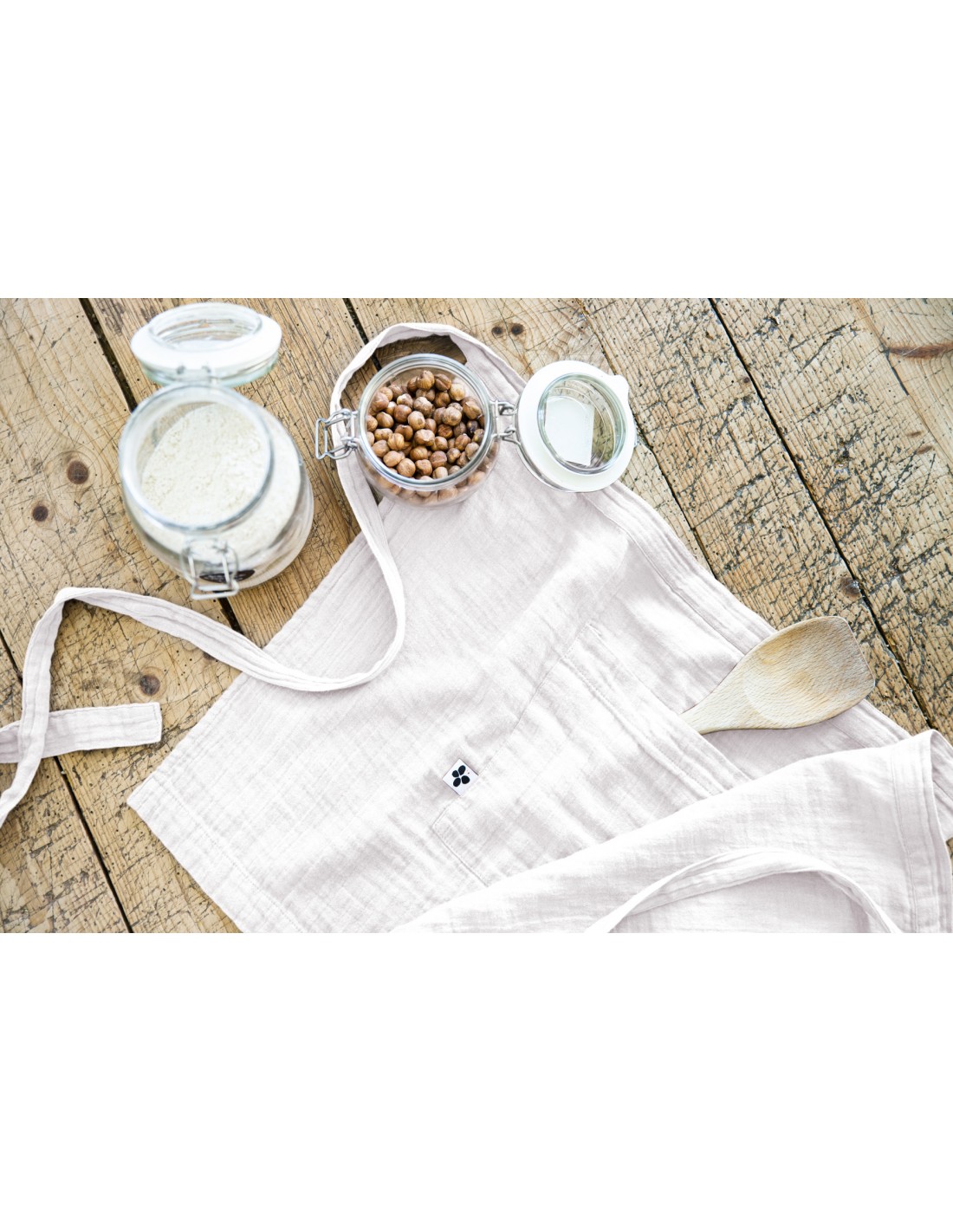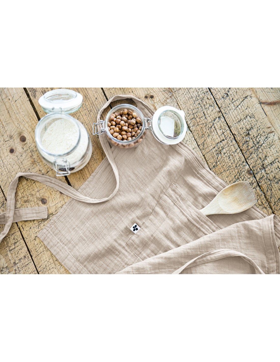 Et comme le plaisir recevoir est un art de vivre, la star de la cuisine c'est bien ce tablier de chef "Gaïa" 45 x 80 cm tendance et bohème en gaze de coton, une matière bien connue pour son pouvoir d'absorption, une matière légère, fluide et surtout très douce.