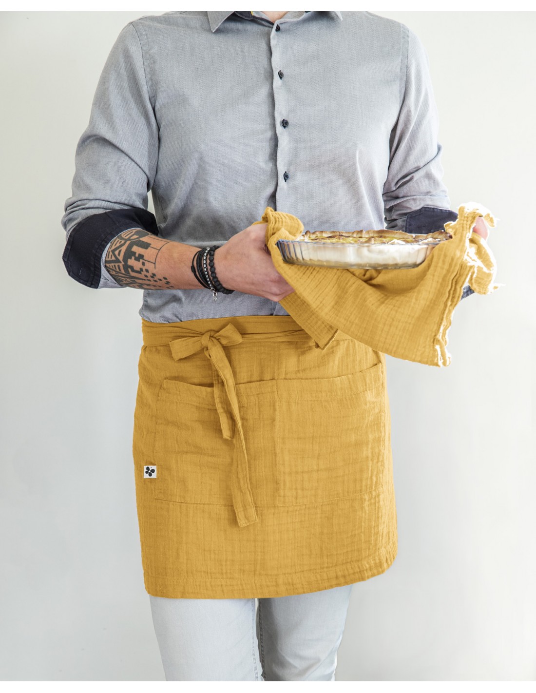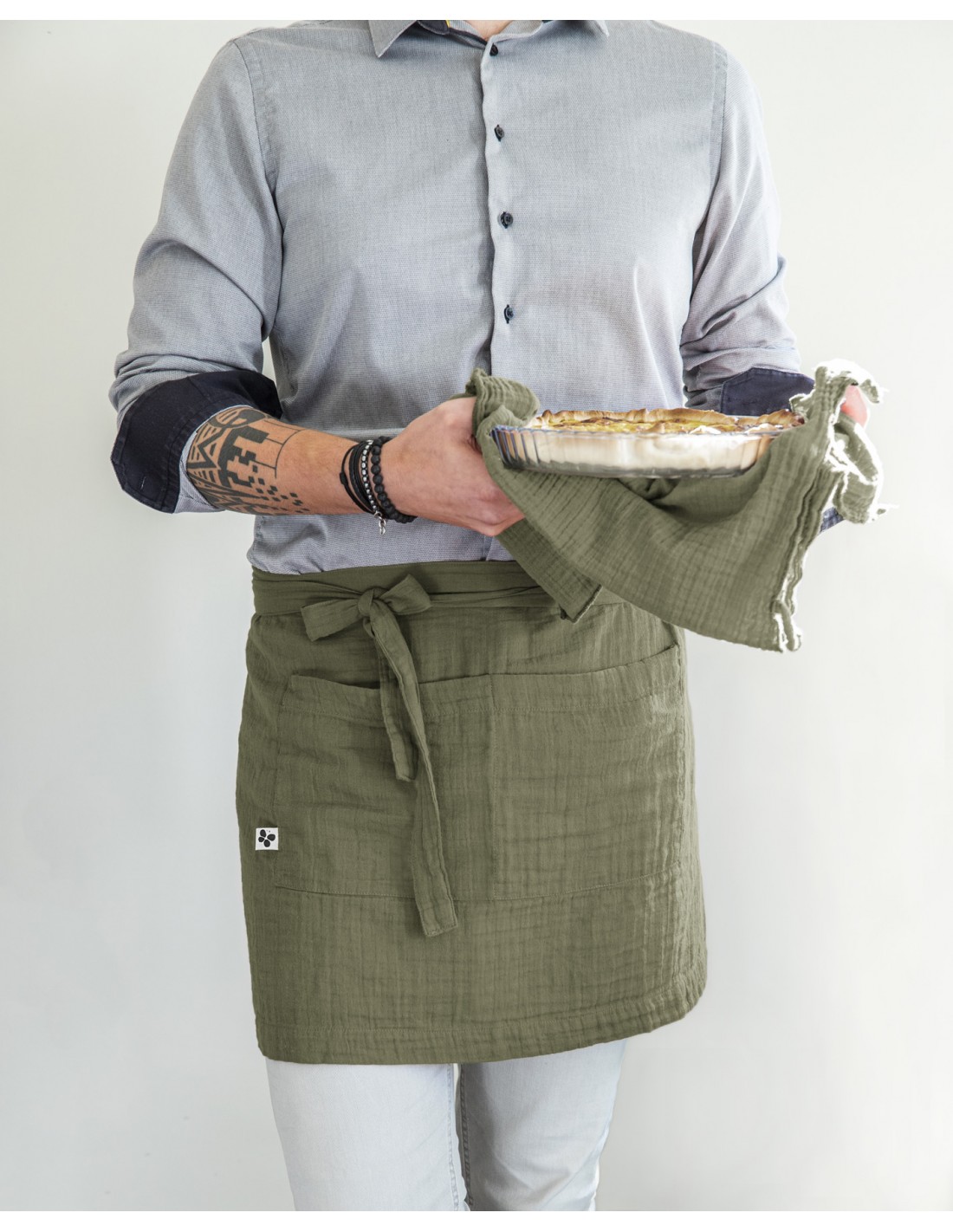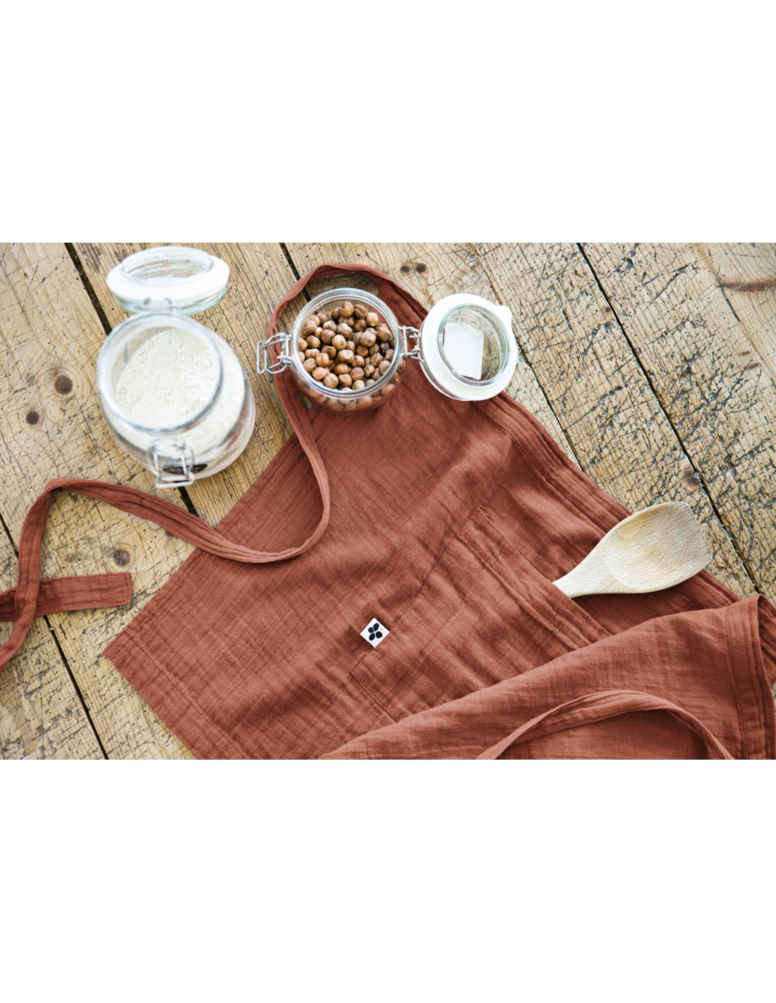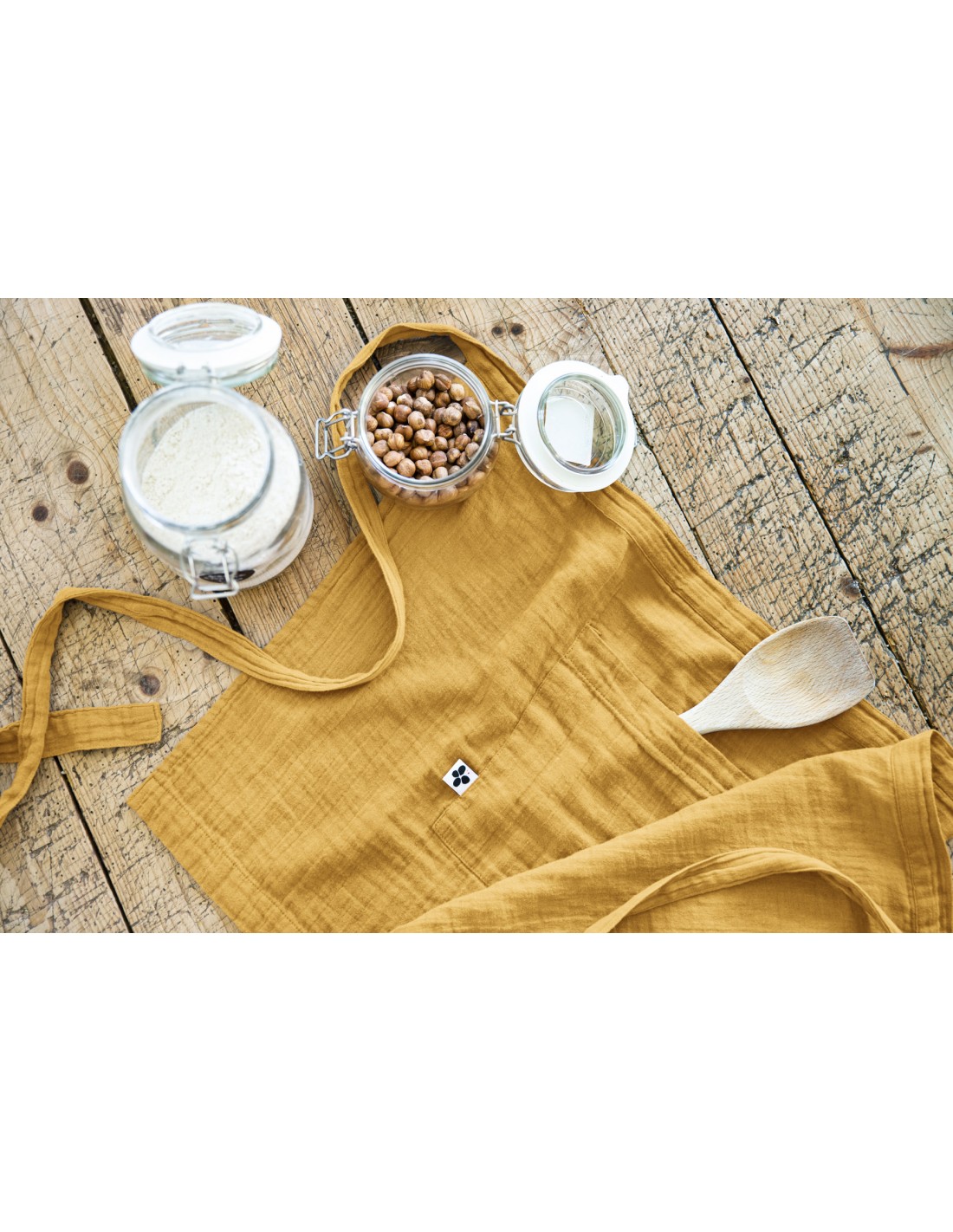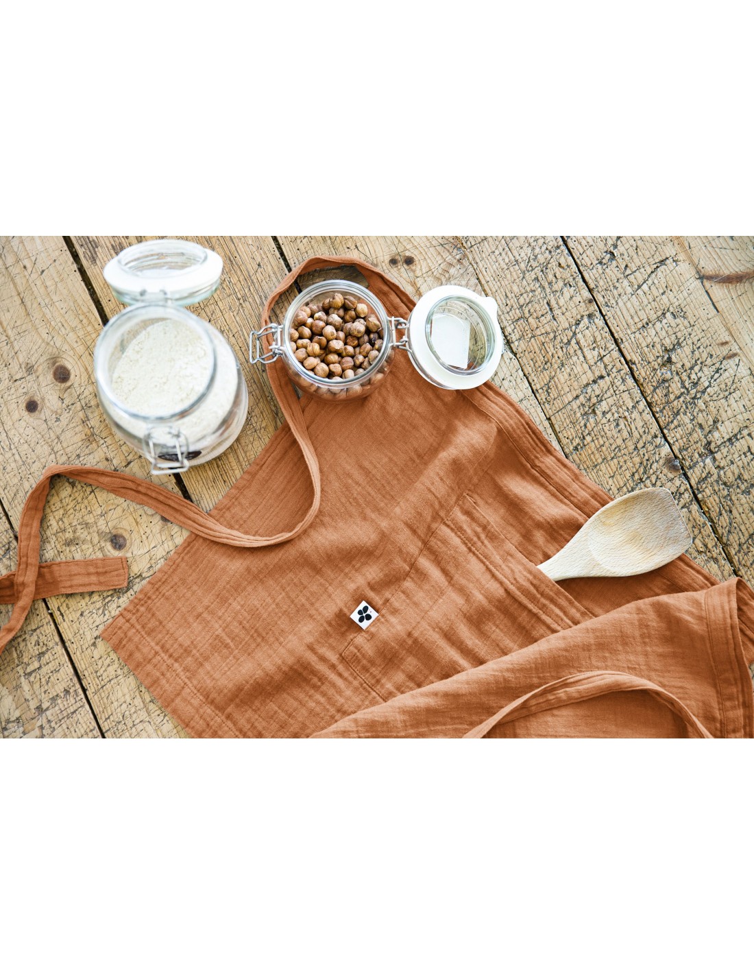 Et comme le plaisir recevoir est un art de vivre, la star de la cuisine c'est bien ce tablier de chef "Gaïa" 45 x 80 cm tendance et bohème en gaze de coton, une matière bien connue pour son pouvoir d'absorption, une matière légère, fluide et surtout très douce.