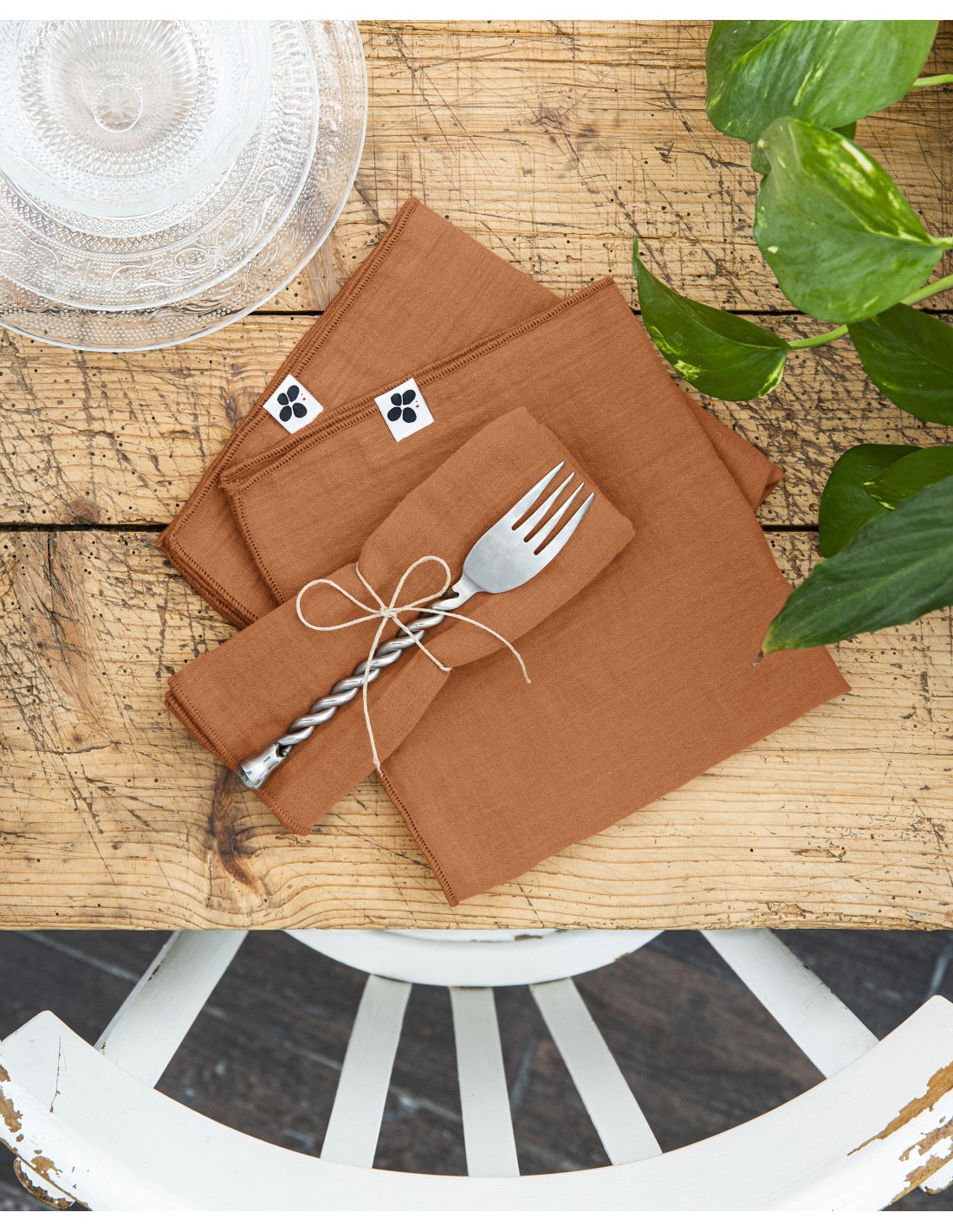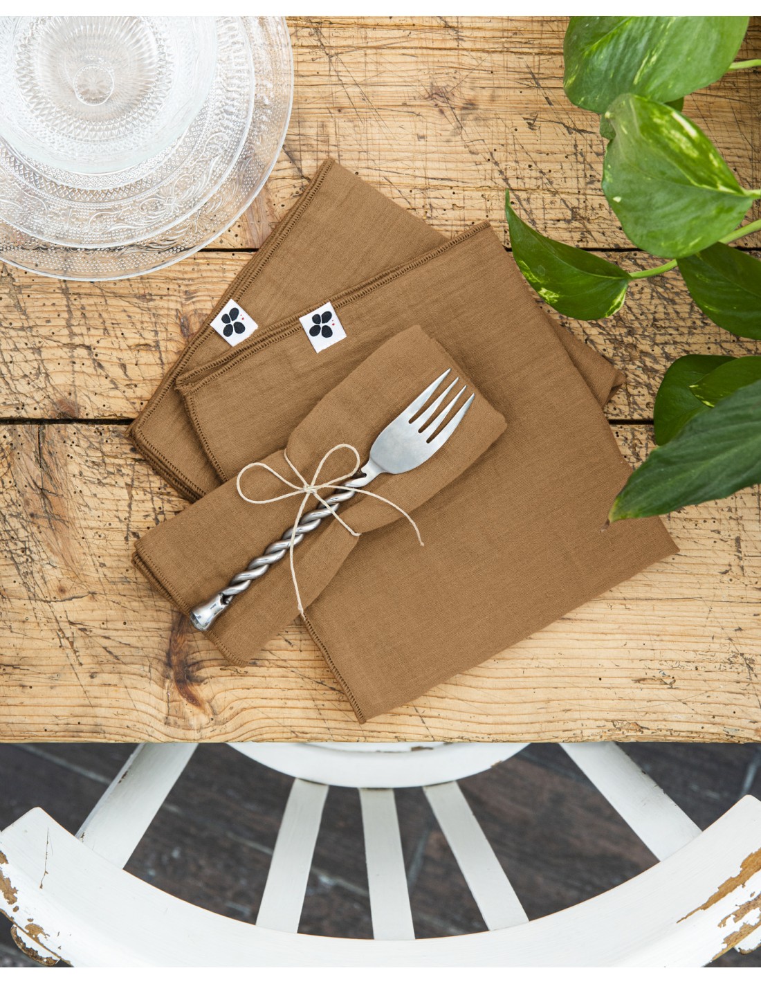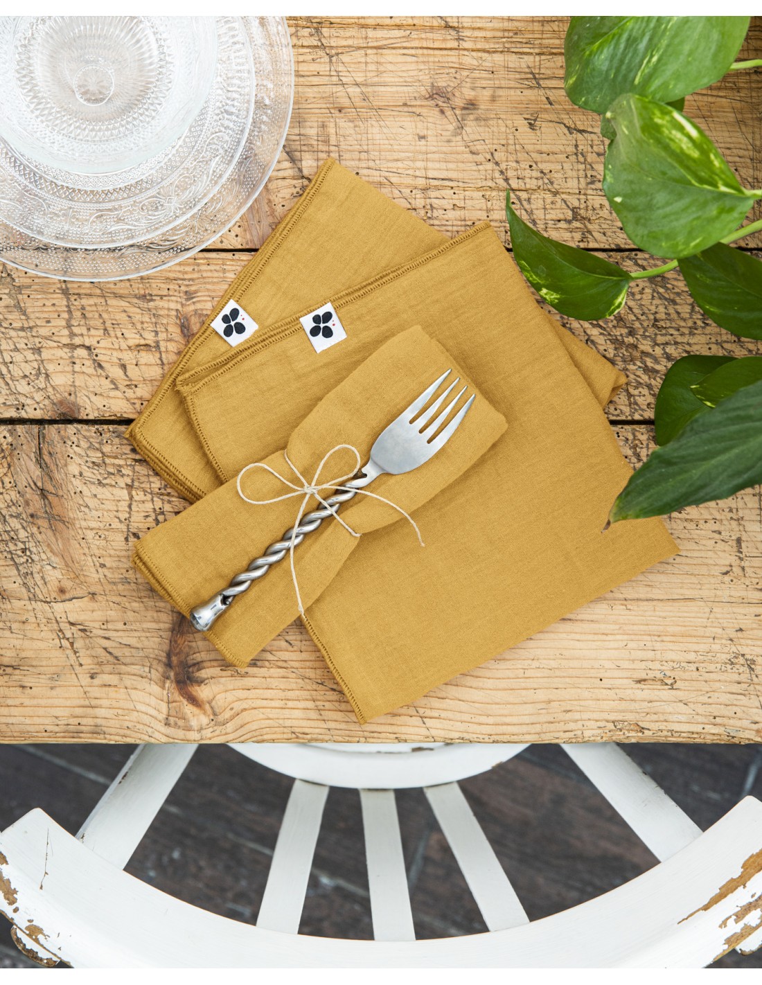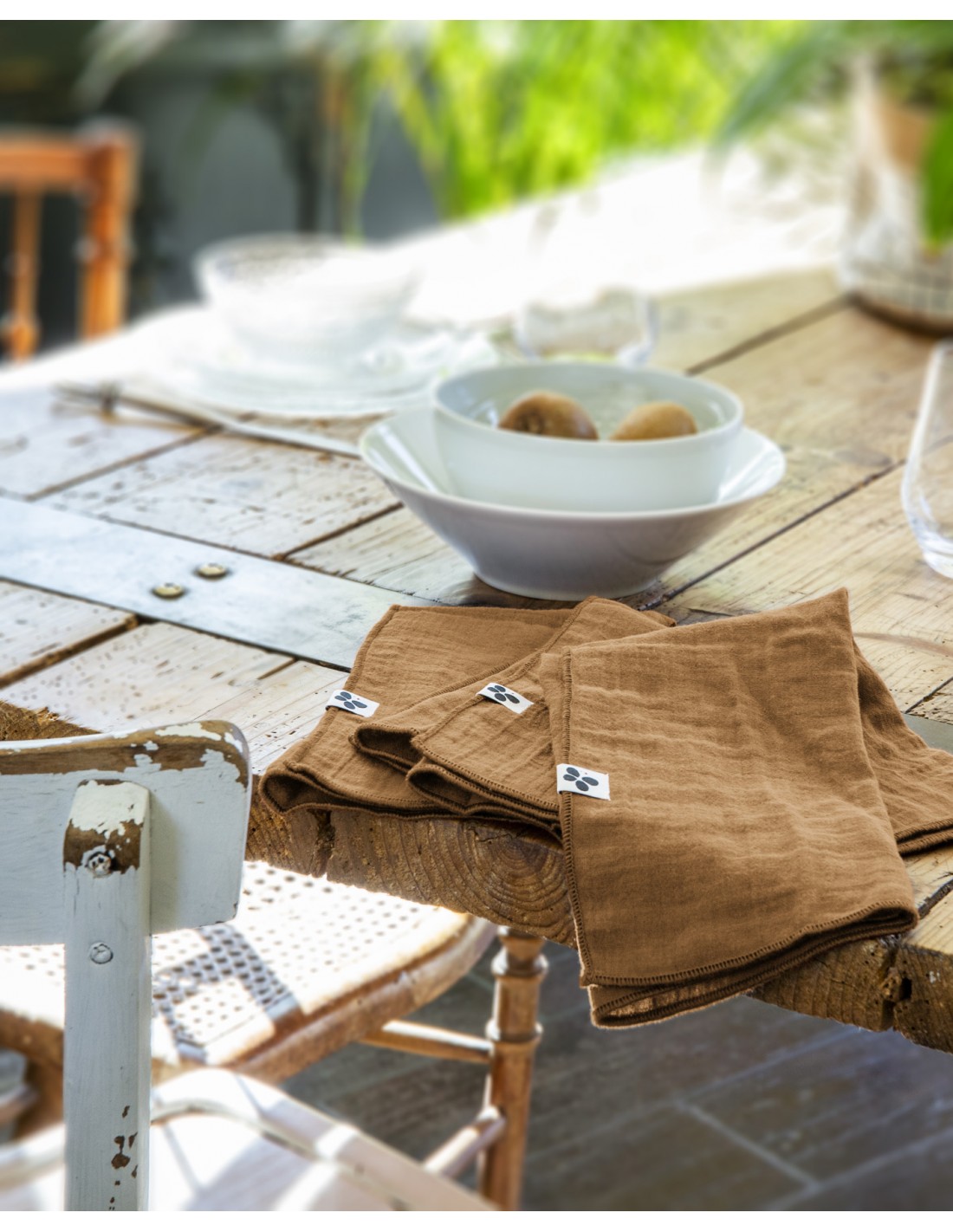 Et comme le plaisir de manger et de recevoir est un art de vivre, la star de la table c'est bien ce lot de 3 serviettes de table tendance et bohème en gaze de coton, une matière légère, fluide et surtout très douce.